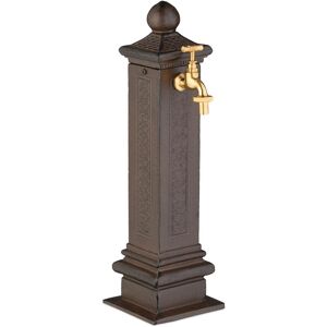Add nostalgic charm to your garden or patio with this antique-style column fountain. Whether purely decorative, for washing your hands after gardening, or for drawing water for watering flowers – the metal fountain always makes a striking impression. The garden fountain features a golden tap, and the hose connection is cleverly concealed within the column. With two holes in the base, this water feature can be securely mounted on paving slabs. Note: For fixed installation on a paving slab, an additional hole must be drilled in the centre of the slab for the hose guide, in addition to the screw holes. Stand Fountain in Detail - Dimensions H x W x D: approx. 47 x 14 x 18.5 cm - Tap height: approx. 32.5 cm - Column W x D: approx. 8 x 8 cm - Connection thread in column D: approx. 2 cm - Distance between mounting holes: approx. 12 cm - Weight: approx. 3 kg - Material: Cast aluminium, steel - Available in various colours Nostalgic Water-Tap Column - Ideal water source for garden and patio