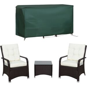 This outdoor bistro set made of PE Rattan is an ideal choice for your garden, patio or balcony. Combined with an steel frame structure and covered with rattan, this set is the optimal set to have. Comes with two seats with cushions and a table with a glass top to place drinks and magazines. The stylish modern design can fit into any style of your home and garden. Specifications: ● Colour: White, Brown ● Material: Steel frame, PE rattan, polyester cloth ● Chair Dimension: 62W x 73D x 95Hcm ● Tea Table Dimension: 54W x 45D x 42Hcm ● Seat Dimension: 50W x 46D x 39.5Hcm ● Armrest Size: 6W x 63Hcm ● Seat Cushion Thickness: 8cm ● Back Cushion Thickness: 5cm ● Rainproof Cloth: 174L x 74W x 96Hcm ● Single Chair Max Load: 160kg ● Tea Table Max Load: 30kg ● Item Label: 841-143V01 Just so you know: this item ships and arrives in separate boxes. Delivery times may vary with each box. Box quantity: 2 Features: ● Solid steel frame and durable PE rattan ● Perfect for outdoor garden, park, patio,