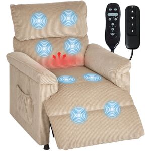 A super quiet, super comfortable escape - whenever you want - this HOMCOM massage recliner chair. Thick padding all over provides all the comfort, whilst offering two points each in the back, waist, thighs and legs the heat soothes and extends the relaxation further. The memory function recalls your favourite position instantly - simply press and go! Specifications: ● Colour: Brown ● Material: Corduroy (100% Polyester), Foam, Steel ● Overall Dimension: 86W x 94D x 105H cm (Upright), 86W x 170D x 78H cm (Reclined) ● Seat Size: 52W x 63D cm ● Seat Height: 49cm ● Backrest Size: 68W x 67H x 18D cm ● Armrest Height (from floor): 67cm ● Input: AC 100-240V, 50-60Hz ● Output: DC 29V/1.0A, 29W (Motor) DC 12V/1.0A, 12W (Massage) ● Power Cord Length: 170 cm (Recliner), 180cm (Massage) ● Weight Capacity: 120 kg ● Item Label: 700-188V70BN Features: ● Eight vibrating massage points, five modes, with lumbar heat soothes your whole body ● 150° reclining back, with footrest: elevate your whole body ●