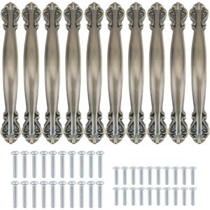 Handle Material: Zinc Alloy. Color: Green Bronze Plated. Cabinet Handle Style: European Vintage Style Zinc Alloy Pulls for Furniture Doors and Kitchen Drawers. Handle Length: 145mm. Height: 20mm. Width: 20mm. Handle Hole Distance: 96mm Usages: Use on cabinet, drawer, door, cupboard, etc. Package: 10 pack handles come with 2 kinds of screws in different length for your needs, including 20pcs 25mm screws and 20pcs 30mm screws.