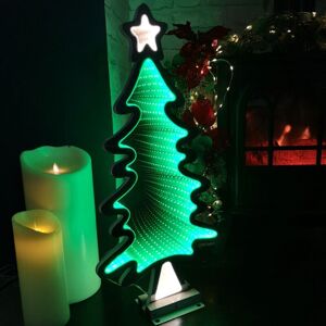 Transform your holiday decor with this charming snowman infinity led light decoration. Infinity lights are a modern mirror effect using light to create an illusion of depth and a repeating light pattern. This simple yet mesmerising light up display is thin whilst creating this amazing 3D effect as you view the snowman from different angles. Create a festive display and a talking point for all your family and guests. Suitable to be placed on most flat surfaces such as by the mantle piece, windowsill or by the front door to welcome visitors this year. Featuring an infinity mirror with white LEDs, this creates the never ending reflection of the snowman when lit up. The snowman decoration sits on a wooden base and is mains operated with a generous 3m clear cable from product to plug. Quick and easy to set up, just simply peel the film off the mirror then attach the base and plug in. Suitable for indoor use only. Product Dimensions Height: 60cm Length: 30cm Base Stand Length: 20cm Cable