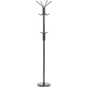 Clothes Stand in Black. Organise your space with this modern yet practical coat stand. Made from durable steel and finished in a classy black, it can withstand the weight of your coats, jackets, cardigans, scarfs, or hats. Not only is this rack perfect to your hallway, but it works equally well in a bathroom, where you can hang towels, pyjamas and other things on it. Add some elegance and chic to your surroundings with this functional stand. Details: Product Type: Coat Stand Style: Modern General Color: Black Material Type: Metal Main Material: Steel Finish: Powder Coated Hooks: 12 Dimensions: Base Dimensions: 30x30 Depth: 30 cm Width: 30 cm Height: 185 cm Weight: 5 kg Weight Capacity: 8 kg Offer Includes: 1 x Coat Stand Key Features: Works Great with Many Interior Styles, Decorative Yet Functional, Easy Care and Durable Materials, Uncomplicated and Self-Sufficient Assembly, Lightweight and Easy to Move Assembly Information: Full Assembly Required. 20-40 min. Maintenance tips: Steel: