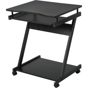 Keep your working times clean and clutter-free with this small desk for home office from HOMCOM. The frame is made of metal for a sturdy structure, crafted into a 'z' shape design which enables it to keep balanced and stable. It features an open tabletop, slide-out keyboard tray and bottom shelf, giving you plenty of room for working and storage. 4 locking wheels at the bottom, making this pc desk easy to move around and keep stationary. A modern piece perfect for all home and office spaces.Features:Made with a slide-out keyboard tray, open table top and bottom shelf for working and storage roomMetal frame for a robust structure, 'z' shape helps promote the balanceFour wheels to move around easily, 2 of which can be lockedCompact designed office desk to cater for small and large working spacesThis home desk of neutral colour suits for all home, office and study spacesMaximum load 35kg, assembly required