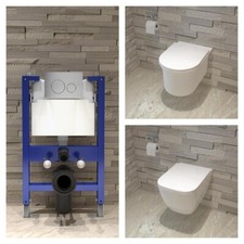 This wall-hung toilet, with a unique and timeless design, can easily upgrade every bathroom. It is designed to save space and provide you with a cleaner bathroom. This toilet with rimless flushing function has a particularly durable and easy to care ceramic surface, which simplifies cleaning and guarantees years of use. Lime and containments do not easily stick to the dirt-repellent surface. The supplied toilet seat with automatic soft close mechanism prevents the toilet lid from falling down. Mounting hardware is completely concealed, giving a sleek and seamless look. Delivery includes mounting accessories. Colour: White Material: Ceramic bowl + plastic seat and lid Dimensions: 36 x 48 x 41.5 cm (W x D x H) Soft-close function Hidden attachment Smooth and easy-to-care surface No bacteria or dirt can collect with rimless design Modern design, suitable for every bathroom Delivery includes mounting accessories