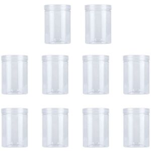 Provides a super tight seal, easy to store or travel. They are easy to twist and turn for easy refilling and easy to clean, health and safety. Use for the kitchen, pantry or home to store dry products, spices, nuts or processed peanut butter. Etc Space-saving and easy to carry, perfect for home use as well as Outdoor BBQ Grill. Especially useful for small kitchens where counter space is premium. Capacity: 500ml Colour: transparent Material: plastic Size: 8.5 * 11cm Package Contents: 10 * can Only the above package content, other products are not included. Note: Light and different displays may cause the color of the item in the picture a little different from the real thing. The measurement allowed error is +/- 1-3cm.