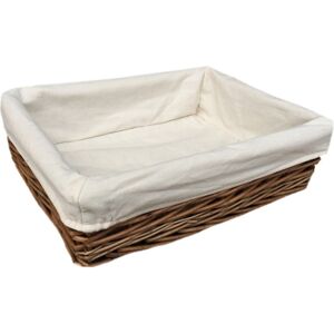 Full antique wash willow with a removable hessian lining.. Attractive looking . High Quality, Well made Basketware. Natural product so dimensions can vary slightly. Manufactured from sustainable materials. Colours and finish could vary. Size Depth 34 x Height 40 x Width 26cm Weight 1kg Material Wicker Red Hamper Wicker Small Rectangular Hessian Lined Log Basket in Brown