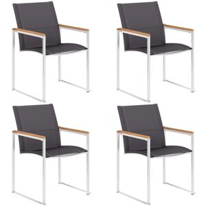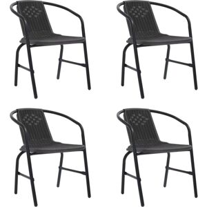 Add a touch of contemporary style to your garden, patio or terrace with these poly rattan dining chairs! These stacking garden chairs are made of water-resistant PE rattan, making them hardwearing, easy to clean, and suitable for daily outdoor use. The outdoor chairs have a powder-coated steel frame, which makes them sturdy and stable. The outdoor chairs are lightweight and can be stacked to save space when not in use. Colour: Black Material: PE rattan, powder-coated steel Dimensions: 55.5 x 53.5 x 95 cm (W x D x H) Seat width: 34 cm Seat depth: 43 cm Seat height from the ground: 44 cm Armrest height from the ground: 64 cm Assembly required: Yes Delivery contains: 4 x Dining chair