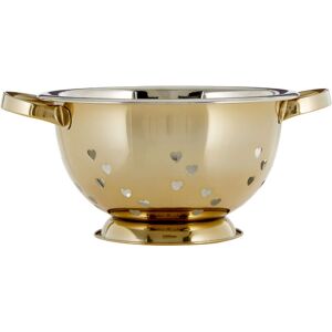 Upgrade your kitchen essentials with the Hearts Design Gold Colander from Interiors by Premier a practical yet visually appealing straining solution. Made from high-quality stainless steel (Grade 201), this kitchen colander is built to withstand everyday use while offering a touch of luxury with its warm gold finish. Whether youre rinsing vegetables, draining pasta, or washing fruits, this colander combines durability with functional elegance. What sets this colander apart is its heart-shaped cut-out pattern, which not only adds a charming decorative touch but also enhances drainage performance. The design ensures that water flows through quickly and efficiently, making food preparation faster and more convenient. Its generous size and sturdy base offer stability during use, preventing spills or tipping when placed in the sink or on a countertop. The wide-set handles are firmly attached and ergonomically shaped for a secure grip, even when handling heavier contents. This makes transferring and shaking off excess water an effortless task. Whether youre using it for boiling, blanching, or washing, the robust structure of the colander ensures long-term reliability without warping or denting. With no need for assembly and easy maintenance, this colander is ready to go straight out of the box. Simply wash it with warm soapy water after use and its good to go again. Its sleek metallic finish resists staining and complements a range of kitchen interiors from modern to traditional. Lightweight at only 0.29kg and measuring H13 x D24 x W24cm, this gold colander balances style and utility. Add a practical yet aesthetic kitchen tool to your cooking routine that performs as good as it looks