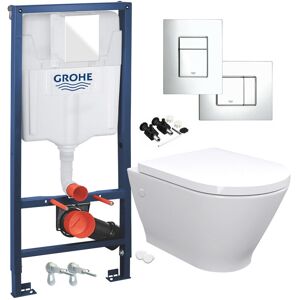 The Rapid SL 3 in 1 Set Support Frame for Wall Hung WC gives you the freedom to design your ultimate bathroom by providing a secure and quick method of installing WCs. Each frame comes pre-assembled with sanitary ware fixings and is subject to stringent testing – Grohe WC frames are tested to hold 400kg. Product Details Brand: Grohe Product Code: 38772001 2 WC fixing bolts For on-the-wall installations or studded walls Front actuation Water supply from left/right or back Insulated against condensation Powder coated steel frame, self-supporting Including wall plate Skate Cosmopolitan 2 modes of operation: dual flush (6/3l) GROHE Starlight offers a made-to-last chrome finish 10 Year guarantee Wall brackets included.