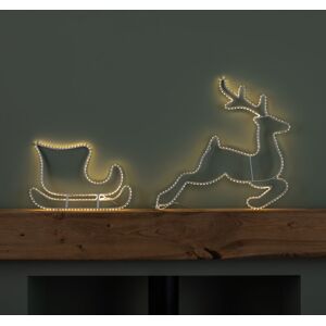 Bring a touch of magic to your festive decor with this Light up Hanging Reindeer and Sleigh Silhouette Light. A stunning seasonal feature that captures the spirit of Christmas in glowing warm white light. Perfect for both indoor and outdoor use, this beautifully designed silhouette set is sure to become a standout feature any Christmas display. Featuring 401 warm white LEDs, the reindeer and sleigh are brought to life with a soft, welcoming glow that creates a classic, elegant effect. Crafted with attention to detail, the reindeer measures 42cm x 43cm and the sleigh measures 34cm x 21cm, creating a perfectly proportioned festive duo. Mains powered with a generous 5 meter transparent power cable allowing for easy placement. Suitable for indoor and outdoor use. Product Specifications 401 Warm White LEDs Reindeer Size: 42cm x 43cm Sleigh Size: 34cm x 21cm Mains Powered with 5m Power Cable