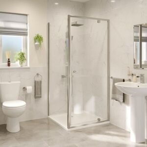 Key Features:Lightweight aluminium frame4mm safety glass1850mm shower door heightEasy-Grip handlesQuick and easy to installReversible doorsCE marked3-year guarantee (guarantee excludes seals and moving parts which are covered for 12 months)What's Included:1x Hydrolux Pivot Shower Door 800mm - 4mm1x Podium Low Profile 800 x 800mm Non Slip Shower Tray with WasteRiser kit containing:2 x 1225mm straight panels3 x Panel joining brackets8 x Feet6 x Panel upright brackets & Hook and Loops8 x Circular base plates & adhesive pads4 x Floor fixing bracketsScrewsElevate your daily routine with the Hydrolux Pivot Shower Door, a premium shower solution designed to enhance your showering experience while adding a touch of elegance to your bathroom décor. Crafted with style and functionality in mind, this stylish pivot shower door is the perfect addition to any bathroom. Lightweight, polished aluminium framesMade from polished aluminium, this enclosure blends perfectly with most bathroom colour schemes and is lightweight for faster and easier installation. 4mm thick safety glassThis enclosure uses thermally toughened 4mm safety glass. 4mm glass provides the best of both worlds: it's strong and sturdy enough for frequent use but light enough to function well on rollers or hinges. 1850mm shower door heightThis shower enclosure has a height of 1850mm. This prevents water from splashing over the top and gives your shower a high-end look. Stylish Easy-Grip door handlesThe Hydrolux collection features Easy-Grip handles. Easy to fit and easy to grip with wet hands, these handles are a stunning finishing touch to your enclosure. Quick & easy installationThese shower panels have been designed for quick and easy installation so that you can enjoy your new enclosure as soon as possible. Reversible doorsThese doors can be fitted to open left-to-right or right-to-left, giving you more options when planning your new bathroom. Podium Raised Non-Slip Shower Tray with WasteDiscover our exclusive range of Podium raised non-slip shower trays, meticulously crafted right here in the UK for the ultimate quality and durability. This raised shower tray is made up of a low profile Podium shower tray combined with a riser kit, creating a safe and durable tray that is perfect for shower enclosures. Easy plumb raised shower tray with waste65% lighter than stone resin traysBuilt-in anti-slip technologyMade in the UKWRAS approved shower trayRiser kit adds 95mm to the height of the tray25 year guarantee for peace of mind High-Flow WasteStandard 40mm connectionA flow of 32 litres per minuteA unique vented dome on the waste allows a high flow of water to pass throughAn inner unit allows a quick-releaseAlso includes an offset elbow for ease of installationSize of waste: 90mmComplies with BSEN1329/1:2000 and BSEN1451/1:2000 standards 60% Lighter than a Stone Resin TrayUnlike stone resin shower trays, our collection of Podium trays are...