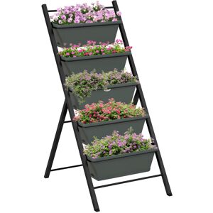 Maximise your garden space with our 5-tier outdoor plant stand, designed in a stylish corner ladder shelf structure. Its raised planter boxes help protect plants from weeds and water build-up, ensuring healthier growth with less maintenance. The tiered vertical layout makes it easy to grow herbs, flowers, or veggies in compact areas - great for patios, balconies, porches, or decks. OUTSUNNY 5-Tier Raised Garden Bed, Ladder Planter with 5 Removable Boxes in Grey