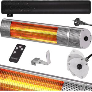 PLEASE NOTE: This item is equipped with a 2-Pin EU-plug. An EU to UK conversion / adapter plug is included in the scope of delivery. The powerful 2000W heater from Monzana This modern 2000W radiant heater from Monzana enables you to optimally heat the outdoor area efficiently and quickly without preheating. With the remote control , you can flexibly choose between 3 heat levels and individually control the heat radiation through the 90-degree adjustable angle of inclination. Thanks to the low-glare infrared radiation technology and the highly efficient wide-angle aluminium reflector , the lighting effect is pleasantly reduced to a minimum and, at the same time, optimal heat radiation is achieved. The elegant device is specially designed for outdoor use . The anodized aluminium housing is rainproof (IP 55) and GS TÜV Rheinland ID 1111241762 approved. Thanks to the included mounting materials , installation is easy. We recommend that you use the device with an individually fused socket
