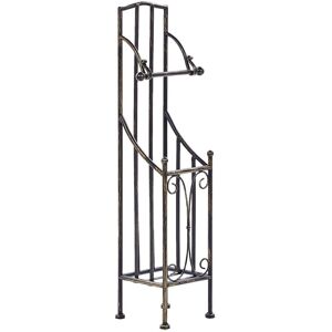 Toilet Paper Stand with Storage and Distressed Finish. Never again worry about running out of toilet paper thanks to this vintage-themed stand in black, distressed colour. Its storage compartment can hold up to 3 paper rolls, and will allow you to hang one more on a special holder. The piece is made out of high-quality iron, so you won't have to clean it daily. Details: Product Type: Toilet Paper Holder Style: Retro General Color: Black Material Type: Metal Main Material: Iron Finish: E-Coating Dimensions: Depth: 15 cm Width: 18 cm Height: 68 cm Weight: 1 kg Offer Includes: 1 x Toilet Paper Holder Key Features: Decorative Yet Functional, Retro Style, High-Quality Materials, Lightweight and Easy to Move Assembly Information: Does Not Require Assembly Additional Information: Distressed effect, weathered look or staining of this product is intentional. Please remember that it is not considered an item defect. Maintenance tips: Iron: 1.Clean with a mild cleaner and soft cloth, wipe dry