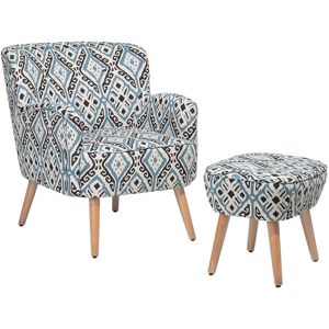 Armchair and Footstool Set. Create the perfect place to relax in your living room with this stylish armchair and footstool set. The furniture is upholstered with an extremely pleasant to the touch bouclé fabric, which adds cosiness and charm to it. The low backrest, rounded forms and subtle decorative accent in the form of buttons make it an ideal piece of furniture for both retro and modern interiors. Details: Product Type: Armchair Style: Retro General Color: White, Brown Material Type: Fabric Main Material: Boucle Additional Material: Rubberwood Filling Material: Foam Legs material: Wood Seat Material: Fabric Material Composition: 100% Polyester Arm Style: Recessed Armrests: Yes Footrest: Yes Leg Caps/ Pads: Yes Pattern: Solid Reclining: No Seat Construction: Elastic Belt Seat Foam Density: 24 kg/m3 Dimensions: Armrests Height: 63 cm Depth: 79 cm Ottoman Dimensions: 52x44x43 cm Seat Thickness: 20 cm Seat Height: 44 cm Width: 74 cm Height: 85 cm Seating Surface: 51x51 cm Overall