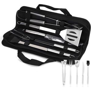 【5-Piece Grill Utensil Set】 : 1 x Grill Tongs (34.5 x 10 cm), 1 x Grill Spatula (34 x 7.5 cm), 1 x Meat Knife (32.5 x 2.5 cm), 1 x Meat Fork (34.5 x 3.5 cm), 1 x Silicone Brush (32 x 3.5 cm), 1 x Carry Bag (38 x 12 x 5.5 cm). 【Easy to Carry】 : This grill kit weighs only 750 grams and comes with a sturdy carrying bag. You can easily store it or take it anywhere. Perfect for outdoor barbecues with family or friends. 【Space Saving】 The grill set is easy to store and carry, and includes a sturdy carrying bag and a fixing ring for convenient installation. Keep your tableware organized and easy to store. Enjoy beach barbecues, lake parties, camping, and many other fun activities with this grill accessory set. 【Save Space】 The grill set is easy to store and transport, and includes a sturdy carrying bag and a fixing ring for convenient installation. Keep your tableware organized and easy to store. Enjoy beach barbecues, lake parties, camping, and many other fun activities with this grill