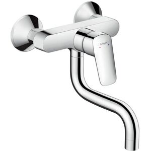 Features of Logis Single lever kitchen mixer wall-mounted, single spray mode (71836000) : Swivel spout 220° normal spray Centre distance 150 mm ± 12 mm Maximum flow rate (at 3 bar): 13 l/min Operating pressure: min. 1 bar/max. 10 bar ceramic cartridge M2 S connections suitable for instantaneous water heating systems Product range : Logis Colour : Chrome Material : Brass Constructor warranty : 5 years Pull out spray : No Type of mixer : Wall-mounted Weight : 2.13