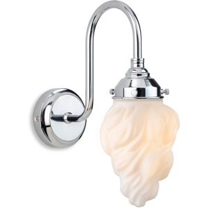 The Firstlight Flame is a classic Art Deco design featuring an elegant swan neck and legendary flame glass. The light can be mounted upwards or downwards. Ideal for any interior, including bathrooms with its IP44 rating. FEATURES: * Wall light * Chrome finish * Opal White flame glass * Dimmable with suitable lamp / dimmer switch * Earthed * Requires 1 lamp * IP44 rated SIZE: * Height: 280mm * Projection: 220mm * Width: 100mm BULBS: * Takes 1 × 25watt Small Edison Screw Candle Lamp —NOT INCLUDED * Compatible with LED lamps