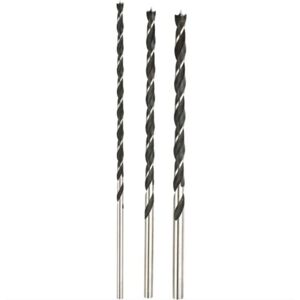 Technical information Drilling diameter: 8 mm, 10 mm, 12 mm Total length: 300 mm Quantities (LOV – only for title): 3 pieces Beam drill, wood twist drill, 300 mm, 3 pieces Beam drill, wood twist drill extra long, 300 mm, made of steel, machined shape, black color, double ground helix for stable straight feed, with centering point and scriber, for precise drilling without splintering, cylindrical shank, industrial quality, for soft or hard wood. Features Wood drill, extra long Steel, non-cutting, spiral shape with 1 chamfer, brightly ground chamfer With centering point and 2 pre-cutters Quality industrial