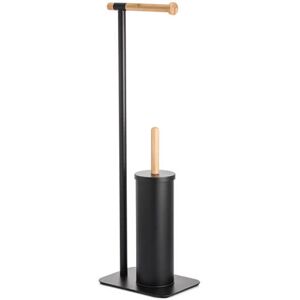 Ensure your bathroom stays tidy and chic with the Showerdrape Sonata Black & Bamboo Toilet Roll Holder & Spare Paper Holder. This versatile freestanding unit stores up to four spare toilet rolls, keeping them neatly organised instead of scattered around corners or atop cabinets. Its stylish matt black finish paired with natural bamboo accents brings a contemporary flair to any bathroom decor. Crafted with a stable weighted base, the Sonata holder remains secure even when fully stocked, offering peace of mind against tipping. Its freestanding design allows for flexible placement wherever suits you best within your bathroom space. Part of the coordinated Sonata bathroom collection, this accessory seamlessly enhances your bathroom’s aesthetic, creating a cohesive and polished look. Dimensions: 66.5 (H) x 22 (W) x 16 (D) cm. Weight: 1.5kg.