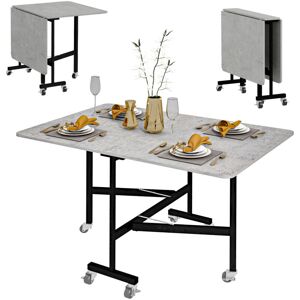 Make large unused tables at home a thing of the past. Choose this folding dining table from HOMCOM for an option that saves space when needed. Crafted into an expandable design, where both sides lift from the bottom; it creates extra surface room while dropping back down into a compact unit effortlessly. It comes with a middle shelf for discreet storage and six wheels to move easily. Completed with brakes. HOMCOM Drop Leaf Table Kitchen Table Extendable Dining Table with Wheels in Grey