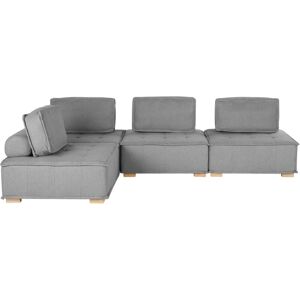 Beige Sectional Corner Sofa. Make your living room even more comfortable, and complete its look with a modular corner sofa. Fully upholstered in easy-care fabric, the piece features solid wood legs equipped with felt pads for extra stability. It boasts the timeless button tufting, which together with the classic piping, offers a traditional look that goes perfectly with minimalist and Scandinavian interiors. The backrest features a thickly padded cushion with a removable cover, that can be removed to uncover a smaller one perfect for lounging. Each module has inbuilt connectors to make sure the whole set stays together. Details: Product Type: Modular Sofa Style: Modern General Color: Beige, Brown Shade: Light Beige Material Type: Fabric Main Material: Fabric Additional Material: Rubberwood Filling Material: Foam Material Composition: 100% Polyester Shape: L-Shaped Arm Style: Armless Fabric Upholstered Back: Yes Leg Caps/ Pads: Yes Orientation: Right Hand Pattern: Solid Seat