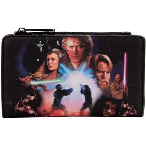 Shield your valuables with the power of the Force with this Star Wars Prequel Trilogy Flap Wallet. On the front of the wallet, a spectacular lightsaber scene plays out from The Phantom Menace movie. On the back, the words May the Force be with you offer protection.Wallet zips closed, has a snap fastener,and sturdy metal hardware. Other features include vegan leather (polyurethane), seven card slots, a clear slot for holding your ID, and printed details. Note the coordinating lining.Specifications:- Wallet dimensions: 6.5 W x 4 H