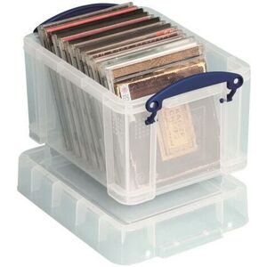Keep files and documents neatly stored away in this 3 Litre Plastic Storage Box from Really Useful. With 3L of capacity, the interior provides room for 18 CDs or 10 DVDs. The clear sides let you see contents at-a-glance for efficient organisation, and provide sturdy protection from the elements and vermin. The design is stackable as well for space-saving storage, and features handles for easy carrying.