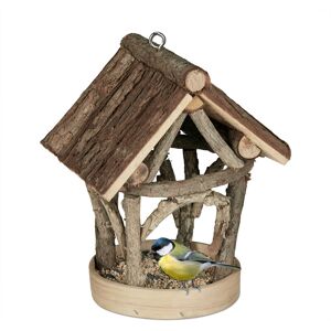 Make wild birds happy in the harsh winter or in the warm season with this feeding station. Filled with nutritious feed, the handmade feeding table can be set up or hung on a branch. The open design of the wooden bird feeding station gives you a good overview of whether feed needs to be refilled. So you and your loved ones can relax and watch the birds while they are eating and enjoy their presence in your garden - fun for the whole family! Bird house at a glance - Overall dimensions: approx. 17 x 13.5 x 22.5 cm (LxWxH)- Inner dimensions of the feeding bowl: approx. 11.5 x 1.5 cm (WxH)- Weight: approx. 400 g- Material: fir wood- Colour: natural colour Small bird feeder for the garden - Eye-catcher on the balcony, terrace and in the garden- For feeding and watching small wild birds- Open design makes it easy to refill- Suitable for hanging or standing- Handmade from real fir wood with its bark - Weatherproof Included in delivery - 1x bird house- Decorative items are not included