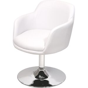 The Janae Swivel Barrel Chair is a clever combination of comfort and functionality. You might see it on the telly in an interview show, or use it in the office room of your house. Easy to clean if you spill stuff over it. No need to look over your shoulder or pull the chair in or out. Once in situ, you just swivel into it. This bucket chair is instantly bold and eye-catching. The side arms are molded into this designer chair and angled very nicely for maximum comfort. The chair is finished in a quality PU with a polished chrome trumpet base. A very neat and compact modern swivel chair. George Oliver Colour: Grey