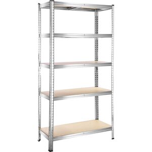 Description: Heavy duty galvanise metal 5 Tier Racking Self is perfect for storage and organisation stock in warehouse and shops. This racking unit is sturdy and durable. It features five solid MDF shelves which are adjustable, moulded feet and can also be split to make two different units, a bench or a corner unit. This superb shelving unit is versatile and is perfect for warehouses, garages, stock rooms and kitchens. Easy to assemble as no screws or bolts are used. Please note that each shelf has a maximum capacity of 175 Kgs. Each bay is has a rust-resistant coating to keep your racks in tip-top condition for years to come. Plus we've included 'non-slip' rubber feet for optimum stability. Ready To Use In Minutes Quick and easy, our innovative bolt-less assembly system makes it easy for you to snap the racking systems safely together with no bolts or screws required Adjustable Layout Each bay consists of 2 freestanding units that slot quickly and safely on top of each other: choose