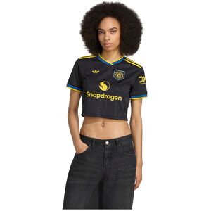 Part of a clean, classic adidas kit that will transport fans to a golden era.Finished in black, this cropped Manchester United third jersey conjures some of the clubs most iconic players and memorable away performances.A yellow Trefoil and club badge stand out on the chest while more subtle, devilish details are woven into the fabric.Moisture-managing AEROREADY keeps fans comfortable while their team creates new football memories.Show your Man Utd fandom in this comfortable, cropped third jersey.FEATURES:-Regular fit.-Crewneck.-100% polyester (recycled).-AEROREADY.-Manchester United woven crest.-Technology Concept:- AEROREADY.