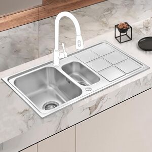 Contemporary and traditional kitchen design Reversible Installation This sink can be assembled with the drainboard either to the left or right. There are 2 tap holes and 1 cover. You can use it according to your choice. Easy to clean JASSFERRY kitchen sinks are made of high-quality SUS304 stainless steel with a matt finish. Durable and corrosion-resistant. It can be cleaned with a soft cloth or 3M sponge scouring pad. 1.5 Bowls Design This 1.5 bowl kitchen sink allows you to use sink independently for washing, soaking. This is an excellent choice for your home kitchen. Large Drainboard A large draining area will come in very handy not only when placing dishes to dry but also as an extra place for cutting vegetables or fruits.