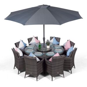 SAVANNAH 4 SEATER ROUND RATTAN GARDEN DINING SET ENJOY SUMMER IN STYLE - Enjoy warm summer days and evenings in style with the Savannah 4 seater round rattan dining set by Giardino. Built to last years, the Giardino brand of synthetic outdoor wicker furniture is UV and weather resistant, lightweight; incredibly durable and looks amazing. This 4 seater rattan dining table and chairs set is available in a stunning mixed brown weave or the ultra stylish mixed grey weave. EVERYTHING YOU NEED FOR ENTERTAINING - The versatile Savannah rattan dining set provides everything you need to enjoy alfresco family meals during long warm summer days, whilst making your outdoor living space ultra stylish! The Savannah outdoor rattan dining set consists of a 120cm round rattan dining table, 4 padded rattan dining chairs, 2.5m parasol and 12kg parasol base. QUALITY CRAFTSMANSHIP - The Savannah rattan garden furniture set is made using aluminium frames and polyethylene all weather rattan, making this