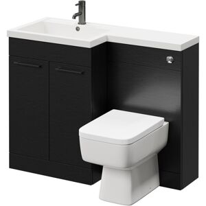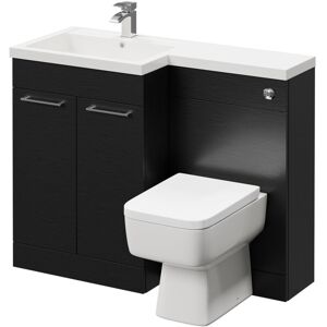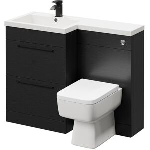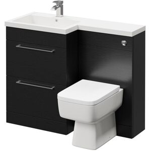 Model Number: WDB93932 Introducing the Napoli Combination Nero Oak 1100mm Vanity Unit Toilet Suite with Right Hand L Shaped 1 Tap Hole Basin and 2 Drawers with Gunmetal Grey Handles. This exquisite toilet suite encompasses a spacious two-drawer vanity unit, complemented by subtle gunmetal grey handles. It includes a ceramic basin, toilet pan, and a matching toilet seat equipped with soft-closing technology. Crafted for space optimisation, the Napoli Combination Nero Oak 1100mm Vanity Unit Toilet Suite conceals pipes for a flawless appearance. The added storage ensures a clutter-free bathroom, while the Nero Oak hue creates a striking ambiance in your redesigned haven. For those seeking a contemporary bathroom transformation, our sought-after Napoli Range offers the answer. Explore diverse shades, shapes, furniture, and accessories, all under the Wholesale Domestic Bathrooms banner - where your bathroom dreams are fulfilled. Key features Two spacious drawers with elegant handles Basin
