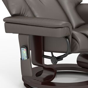 Sink into pure bliss with the swivel armchair, featuring 10 heavenly massage points to soothe your back, seat and feet. Kick back in style as this reclining swivel chair offers a luxurious 145° recline and a 360° swivel, all wrapped in easy-to-clean PU and a plush foam filling. The optimum lounge chair experience awaits!- Ten massage points for enhanced relaxation across back, seat and footrest; - Reclines up to 145° for optimal comfort; - 360° swivel for versatile seating positions; - Easy-to-clean PU upholstery for simple maintenance; - Thick foam filling for soft, supportive seating; - Side pockets offer convenient storage for essentials; - Robust steel frame with wood base; - Assembly required; - Materials: PU Leather, Foam, Wood, Steel; - Upright Dimension: 79W x 82D x 101H cm; - Recliner Dimension: 80W x 112D x 95H cm; - Footstool Dimension: 48W x 42D x 42.5H cm; - Seat Size: 50W x 52D x 45H cm; - Back Size: 68L x 66W x 15D cm; - Input: 100-240V, 50-60Hz; - Output: 12V, 0.6A; - Cable Length: 1.8 m; - Weight Capacity: 160 kg (chair), 20 kg (footstool); - Item Label: 700-116V72BK; Lark Manor Upholstery Colour: Brown
