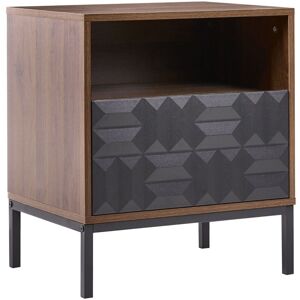 Industrial Storage Nightstand. This wonderful bedside table is an industrial classic that makes a true highlight in any loft-style bedroom. The timeless combination of the concrete effect and black metal base gives it a minimalist touch. The piece features a drawer that easily fits all kinds of accessories and a wide top for your lamp. It can also serve as a side table in your living room offering additional space for your decor pieces. Details: Product Type: Bedside Table Style: Industrial General Color: Grey, Black Shade: Light Grey Material Type: Engineered Wood Main Material: Particle Board Additional Material: MDF Legs material: Metal Top Material: Engineered Wood Drawers: Yes Finish: Melamine Leg Caps/ Pads: Yes Number of Drawers: 1 Shelves: No Dimensions: Depth: 41 cm Width: 55 cm Height: 39 cm Weight: 11 kg Drawer Weight Capacity: 5 kg Top Weight Capacity: 60 kg Offer Includes: 1 x Bedside Table Key Features: Perfect for Both a Bedroom and a Living Room, Modern Design, Robust