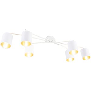 QAZQA Modern Ceiling Light White 6-Light - Lofty Video Looking for a timeless Ceiling Light? Then choose our lovely Lofty! It has a length of 101 cm and a width of 40 cm. The mounting plate for the ceiling has a diameter of 9.7 cm. The lamp is height adjustable. It is finished in a radiant white colour. The golden inside of the shades creates a nice light effect. A nice advantage: the lamps on the pendant lamp are adjustable, so you can shine the light wherever you want it. Super nice in the living room or in the hallway! You can complete the Ceiling Light with six nice light sources that fit an E14 fitting (each max. 25W). The lamp is also dimmable with an external dimmer. Create a cosy atmosphere with the Lofty! Bulb holder: E14 . Max 6 x 40 W, 230 V Suitable for: Incandescent, Halogen, Led, Energy saving Connecting voltage: 220V/230V Protection class: IP20 Dimmable, dimmer not included,No, without cord and plug Lightsource: Exclusive The QAZQA Modern Ceiling Light White 6-Light