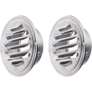 Package includes: 2 x ventilation grilles, round, silver. Material: The weatherproof grille is made of stainless steel, thickened and polished, with smooth edges, corrosion resistance and durability. Dimensions: outer diameter: 142 mm, inner diameter: 98 mm, height: 45 mm. 45-degree inclined shutter design: It can prevent rainwater from flowing backwards and prevent rain and snow; there is also a fine filter inside to prevent mosquitoes, insects, mice, etc. from entering. Widely used: The ventilation grille can be used in kitchens, range hoods, cabinets, bathrooms, bathrooms, exterior walls and other places. The ventilation grille clips are fixed and easy to install.