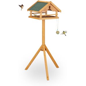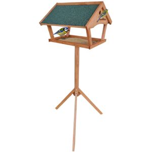 This freestanding bird feeder made of natural fir wood is perfect for supporting your feathered friends such as blackbirds, blue tits, and robins all year round. Thanks to the tall stand, the feeding station is protected from predators. The two closed sides of the bird feeder keep the food and birds dry. Placed in the garden or on the terrace, the bird feeder offers you and your family a wonderful and educational observation opportunity. Birdhouse with stand in detail - Overall dimensions H x W x D: approx. 107 x 32 x 27 cm - Dimensions of house H x W x D: approx. 29.5 x 32 x 27 cm - Weight: approx. 2.5 kg - Material: fir wood - Available in various colours Birdhouse for feeding wild birds - Ideal feeding spot for native birds - Open design for easy filling - Great observation opportunity for children and adults - Freestanding thanks to the base for patios and gardens - Made from natural fir wood Included in Delivery - 1x bird feeder with stand in separate parts - With assembly