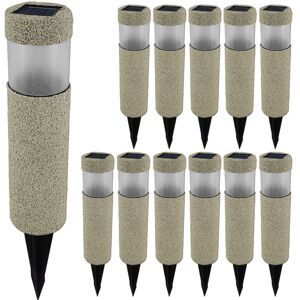 12x LED solar lamp in stone effect - up to 8 hours of lighting time! Use the energy of the sun and showcase your garden, terrace or balcony! With these LED solar lights you can create a pleasantly lit ambience in your garden area effortlessly and without laying cables . The outdoor lamps are made of weatherproof material (protection class IP44) and are equipped with modern solar technology and powerful, long-lasting LEDs . Simply insert the lamps into the ground using the ground spike - done! A twilight sensor switches the garden lighting on automatically in the dark. With this stone-effect outdoor lighting you can easily beautify your garden area and create a great lighting ambience on a cosy summer evening. Product Details: - Powerful solar technology - up to 8 hours of luminosity - Automatic switch-on at dusk - Weatherproof and robust (protection class IP44) - Internal rechargeable battery - Powerful and long-lasting LEDs - Shockproof and scratch resistant Technical Specifications: