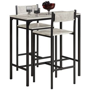 3 Pieces Bar Set- one bar table and two stools - is the perfect addition to any family home. Modern design, strong metal frame, stable structure. Made of high quality MDF coated with PVC and black powder coated steel frame. An excellent solution for the kitchen, a bar and a restaurant. Practical and fashionable, this space saving dining set will provide a functional as well as relaxing place to eat and drink with friends and family. Product Details Material: MDF, metal. Table Dimensions: L89 x W45 x H87cm. Stool Dimensions: L40 x W38 x H95cm. Seat height: 67cm. Set weight: 20kg. Load capacity: Table: 60kg. Stool: 120kg. Item comes in a flat pack and requires self-assembly. Detailed instructions supplied. The decorative elements are not included in the delivery.