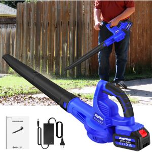 PACKING LIST: Motor*1, Lower Blowpipe*1, Upper Blowpipe*1, Rechargeable Battery*1, Charger *1, User manual *1 Feature: Power: 4000W Speed: 10500 RPM Wind speed: 110 mp/h Airflow: 220 cf/min Speed control: None Battery capacity: 4000MAH Endurance: 20 minutes (full charge) About this item: ENHANCE YOUR EFFICIENCY: Battery-powered design of the cordless leaf blower means you can say goodbye to the noisy petrol blower and there's no need to drag the cord around. POWERFUL & EFFICIENT: Equipped with a 21V copper motor, the air blower delivers up to 130 MPH and 250 CFM (10500 RPM), providing plenty of power to get the job done. LIGHTWEIGHT & ERGONOMIC: The blower shell is crafted from lightweight ABS engineering plastics, weighing only 3.3 pounds, enabling single-handed use. The design to meet the grip habit of human hands EASY TO USE AND STORE: Electric leaf blowers only require one on/off button, are easy to operate and disassemble, and take up minimal storage space. TWO-SPEED MODES & WIDE