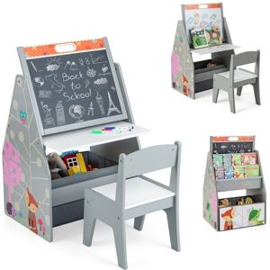 Features:1. Features a lift-top design with inner storage place. Flexible spring hinge stops the tabletop at any position. And Protective cushioning pads reduce noise.2. Supported by solid wood legs, the kids art table and chair shows impressive stability. Also, the anti-pinch cut out handle for safe use.3. High backrest and large seat for safe and cozy sitting experience. Whats more, the removable and replaceable paper roll offers drawing space.4. Multifunctional kids table & chair set for learning, drawing, playing, eating. Moreover, Ideal for kids over 3 years old.5. Smooth and waterproof surface for easy maintenance. Besides, rounded corners and reinforced connection for safe use. Specifications:Color: GreyMaterials: Solid Wood, MDF Dimension of Table: 60 x 40 x 58 cm (L x W x H)Dimension of Chair: 29 x 29 x 53 cm (L x W x H)Size of Storage Space under Tabletop: 54 x 34 x 7 cm (L x W x H)Size of the Paper Roll: 10 m x 44 cm (L x W)Seat Height: 27cmLength of Paper Roll Holder: 56 cmNet Weight: 9 kgWeight Capacity of Tabletop: 30 kgWeight Capacity of Chair: 50 kgRecommended Ages: 3+ Years OldPackage Includes:1 x Table1 x Chair1 x Paper Roll2 x Markers1 x Instruction Costway Kids Art Table Set Children Wooden Lift-Top Craft Desk & Chair w/Markers in Grey