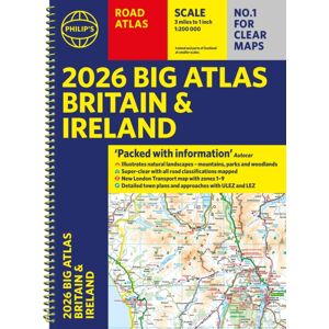 'Good balance between detail and clarity with excellent town maps' What Car?PHILIP'S is No. 1 in the UK for clear maps. The latest 2026 Philip's Big Road Atlas of Britain and Ireland, in a supersize large format, has fully updated maps from the Philip's digital database alongside all the detail and information needed for successful travel. * Low Emission and Ultra Low Emission Zones clearly marked on town plans* Top driving tips for safety and skill including parallel parking * The best scenic routes, natural features and landscape highlighted for enhanced travelling* Practical 'more to view per page' A3 size* Main scale of maps: 3 miles to 1 inch = 1:200,000 for ease of use* Route-planning section for the easiest navigation* 64 fully indexed town and city plans* City approach maps with named roads for the best access* Clear road map showing all of Ireland2026 Philip's Big Road Atlas of Britain and Ireland contains 96 pages of road maps covering Britain at 3 miles to 1 inch (Scottish Highlands and Western Isles at 4 miles to 1 inch, Orkney and Shetland at 5.25 miles to 1 inch).The maps clearly mark service areas, roundabouts and multi-level junctions for easy navigation, and in rural areas distinguish between roads over and under 4 metres wide, to help wide vehicles. There are extra-detailed town plans for easy navigation with all counties marked for clarity.The atlas also includes a 2-page road map of Ireland, route-planning maps, a distance table, and 12 large-scale city approach maps with named arterial roads and the expanded ULEZ clearly outlined for London. Wherever you are driving in Britain or Ireland, this is the ultimate road companion.