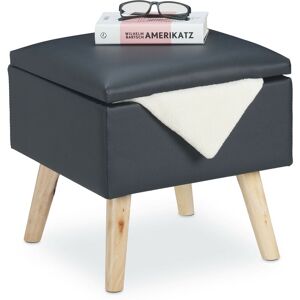 The stool with storage space is the clever 2-in-1 solution for the living room, hallway and other living areas. You can store magazines, remote control and other everyday items in the inner compartment. The upholstered seat makes for a comfortable sitting experience. The stool also cuts a fine figure as a practical footstool in front of the couch or armchair. The storage stool impresses with its decorative interplay of wooden legs and imitation leather cover. Stool in detail - Dimensions H x W x D: approx. 40 x 40 x 40 cm - Interior dimensions H x W x D: approx. 15 x 35.5 x 35.5 cm - Load capacity: max. 120 kg - Weight: approx. 7 kg - Material: Wood, imitation leather, foam, MDF - In various colours Elegant upholstered stool with cover - Can be used as a stool, footrest or shelf - Additional storage space for toys, catalogues etc. - Attractive in hallway, living room, guest room and bedroom - Rubber foot pads protect the floor from scratches - Sturdy material and elegant design in