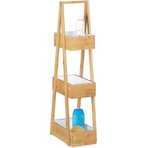 The 3 compartments of this practical rack provide plenty of storage space for smaller items like cosmetics, writing utensils and tools. The caddy does not take up much room, so it is therefore ideal for small nooks and crannies. The sustainable bamboo is weather-resistant and highly suitable for moist rooms like the kitchen and bathroom. Whatever you use it for, the natural wood of this bathroom butler will look great anywhere. Details on the Bathroom Shelf with 3 Baskets • Total size: approx 82 x 30 x 18 cm (32.3 x 11.8 x 7.1 in) • Weight: approx 2 kg (4.4 lbs) • With 3 storage compartments (securely fixed) • Distance between shelves: approx 19 cm (7.5 in) • Storage boxes: 8 x 22 (24, 26) x 15 cm (3.1 x 8.7 (9.4, 10.2) x 5.9 in) • Storage room: 5 litres • Material: Bamboo • Inner material: wood Natural Bamboo • Quickly renewable • Sustainably built • Unaffected by moisture • Lightweight and easy to transport • Natural look for your home • For bathroom accessories, office supplies,