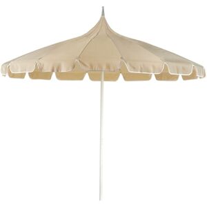 Stylish Market Umbrella. This parasol combines functionality with style, offering shade and enhancing the look of your outdoor space. It is crafted from UV and rust-resistant material, providing sun protection and longevity. The pole is made from lightweight yet sturdy aluminium, making it easy to move around and ensuring stability. Thanks to its neutral colour it will look great in gardens and patios in diversified styles. Details: Product Type: Market Parasol Style: Retro General Color: Blue, White Material Type: Fabric Main Material: Fabric Additional Material: Aluminium Material Composition: 100% Polyester Shape: Round 360 Rotation: No Flaps: Yes LED: No Number of Ribs: 24 Ribs: 24 Tilting: No Umbrella Open Mechanism: String Dimensions: Depth: 245 cm Width: 245 cm Pole Diameter: 38 Height: 269 cm Weight: 5 kg Offer Includes: 1 x Parasol, Not Included: Weighted Base Key Features: Modern Design, UPF 30+ (filters 96.7% of UV radiation), High-Quality Materials, Sturdy Frame