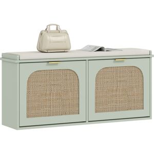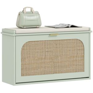 Easy elegance comes in the form of this HOMCOM hallway shoe storage bench. With a ridged front and exquisite metal tab handles, this is a beautiful piece which you'll love bringing into your home. The flip drawers reveal room for up to ten shoes, with a removable middle divider to provide room for heels and boots as needed. Finished with a padded top cushion so you can sit comfortably when changing footwear. HOMCOM Shoe Bench with Padded Seat Cushion & Flip-Drawer, 104x26x47.5cm in Green