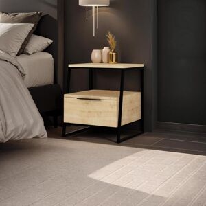1 Drawer Light Oak Modern Black Metal Frame Nightstand -Introducing the 1 Drawer Light Oak Bedside Table Nightstand, a stylish and modern addition to your bedroom decor. Featuring an elegant light oak finish complemented by a sleek black metal frame, this bedside table seamlessly blends contemporary aesthetics with practical functionality. The melamine coating not only enhances its visual appeal but also provides scratch and UV protection, ensuring lasting durability. -Designed for convenience, this nightstand includes a strong bottom fixed drawer runner that allows for smooth operation, while the easy grip pull-style metal handle adds a touch of sophistication. Delivered in eco-friendly, fully recyclable outer packaging, this bedside table reflects a commitment to sustainability, making it a perfect choice for the environmentally conscious homeowner. Elevate your space with this chic and functional bedside table that combines style and practicality. Dimensions: Height: 50cm, Width: